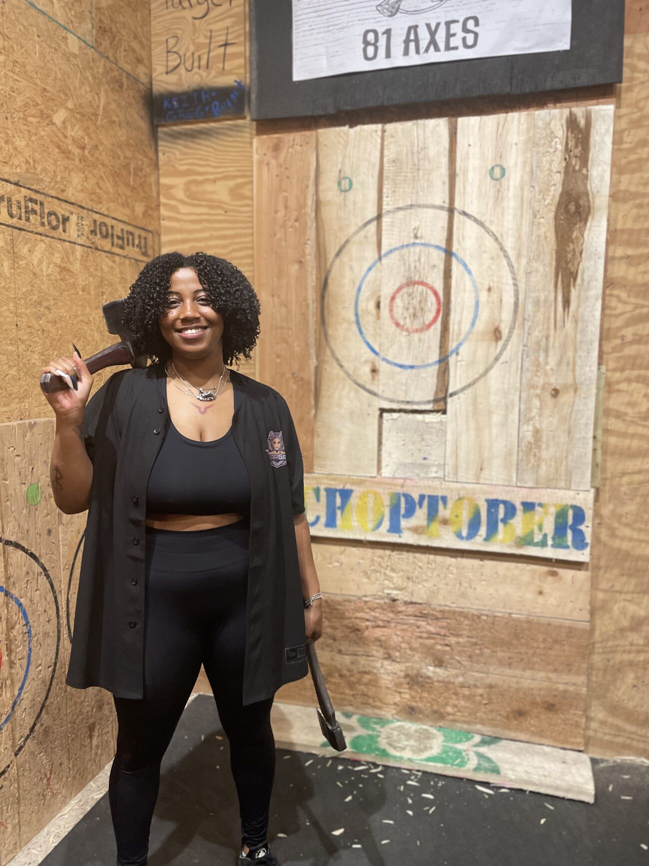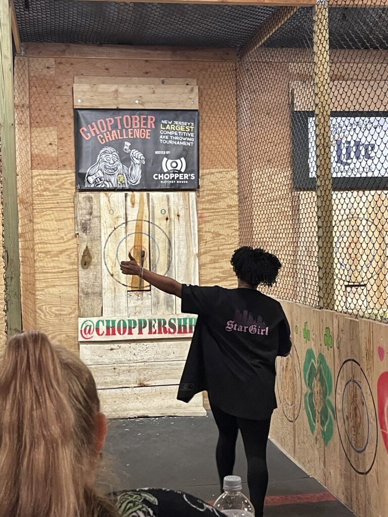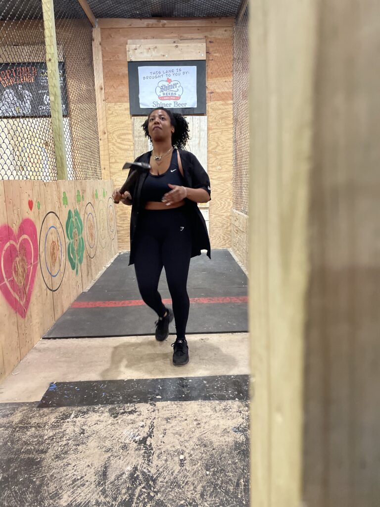 TO ME, AS A LITTLE JEWISH BOY, AXE THROWING WAS SURPRISINGLY WELCOMING. FROM YOUR PERSPECTIVE AS A BLACK WOMAN, HOW HAVE YOU FELT COMING INTO THE SPORT?