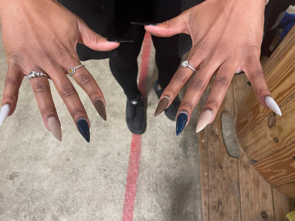 YOU’RE A REALLY OUTSTANDING THROWER, SO IT’S HEARTENING TO HEAR THAT YOU’VE FELT WELCOME IN AXE THROWING. SPEAKING OF – i NOTICE YOU HAVE SOME RATHER LONG, PERFECT NAILS.