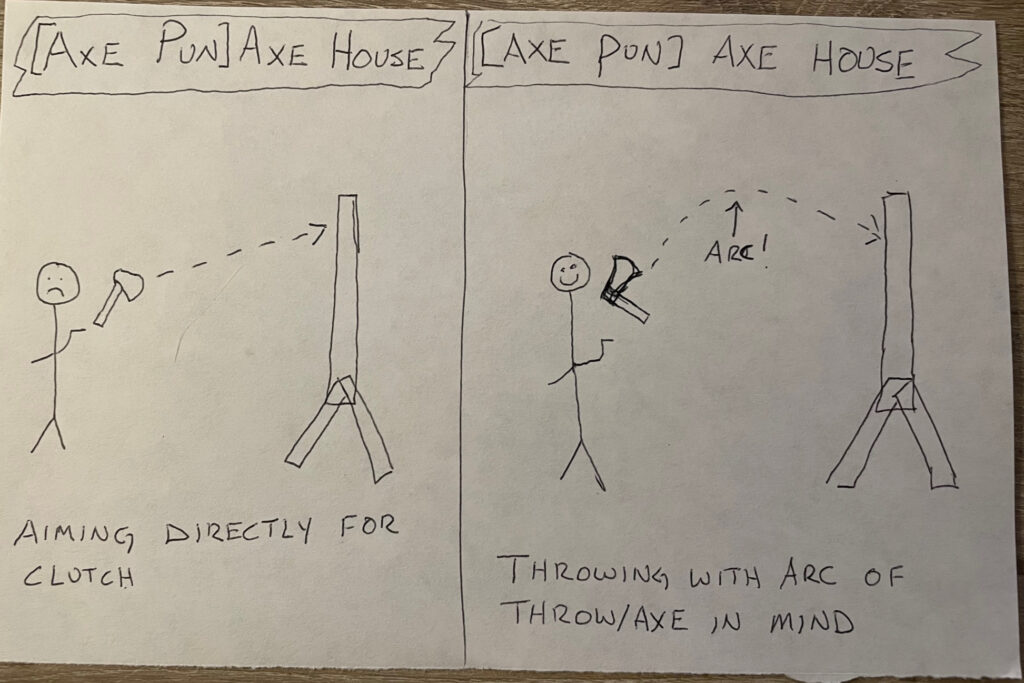 This might be something that people who are very good just understand about axe throwing, but I didn’t understand it at all, and nobody explained it to me until Chapman. So now I’m explaining it to you.