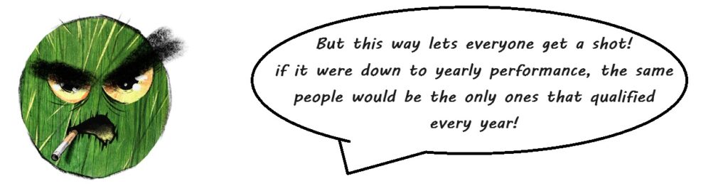 But as I nestle in to my understanding of leagues and championships, I am beginning to get a nagging feeling that the confusion I have around the whole derned process isn’t just because I’m not very smart. I think–maybe–this whole qualification system is a bit off.
