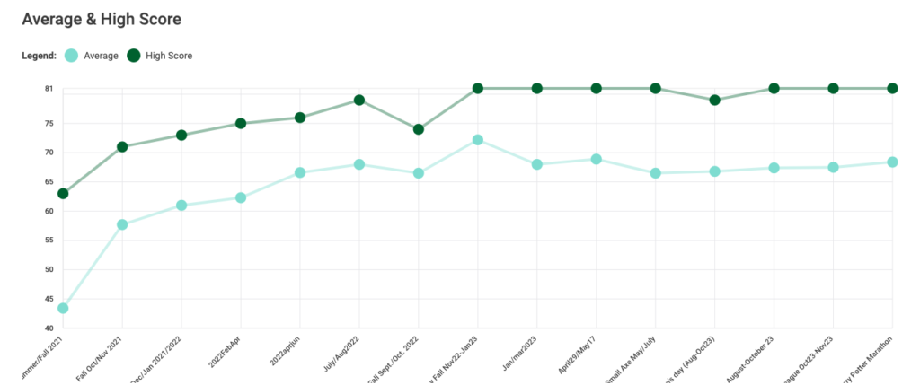 I can see my average score as pretty much stayed on an upward trend my entire throwing career.