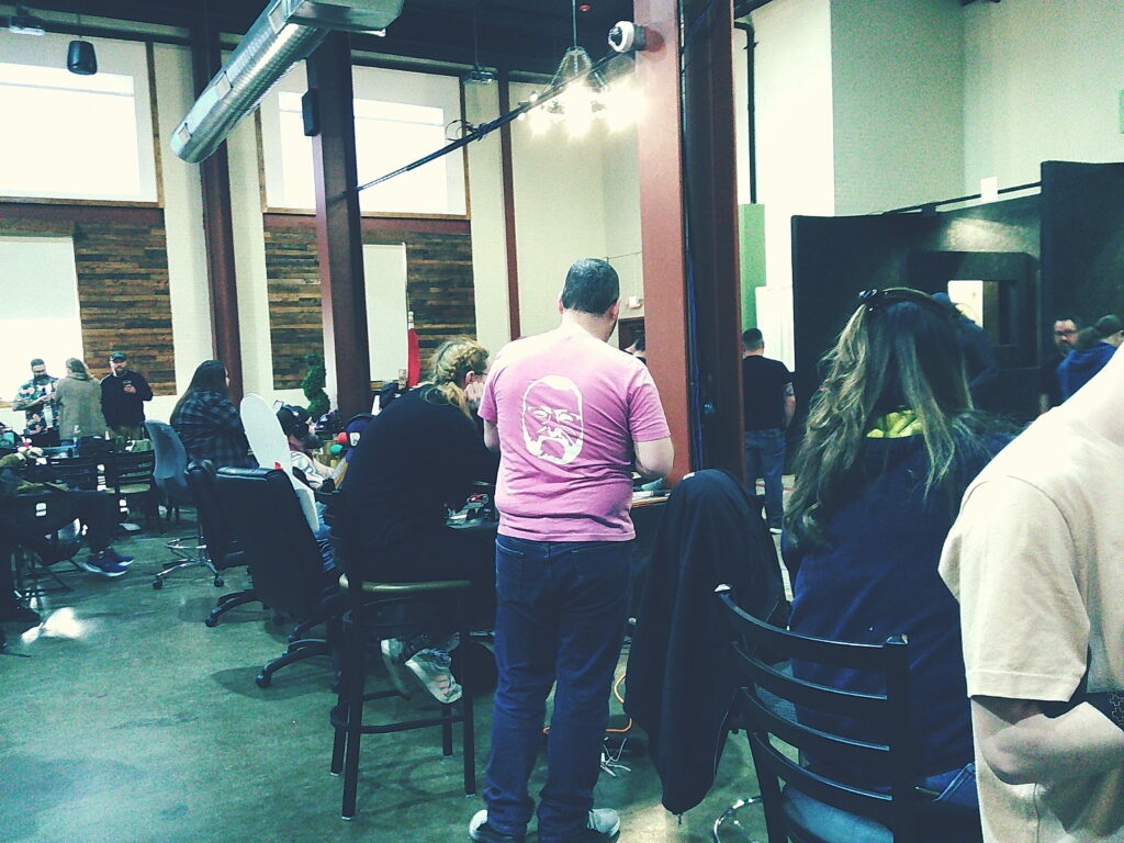 Gang, I know what I know. And I know I could drivel on about the experience of the Championship and all the little badgery lessons I learned (which I will do, no doubt) – but the day after a tourney is for pictures. So here they are, in all of their cheap-digital-camera glory. Enjoy the blown-out, blurry, over-exposed magic:
