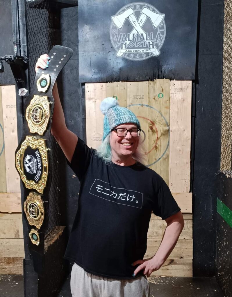 It was a whole lot of fun though, and I just loved the experience. I’m generally just a happy person who is quite chatty and just likes to talk a lot, but there are a number of things that also help. I have lots of fun with both my amazing co-commentators and also the people watching who are kind enough to get involved in the chat and make it all interactive. I’m very happy to just ramble on by myself, but it definitely works better if I have someone else to chat to and bounce off. Plus I just genuinely really enjoy watching axe throwing and get excited by it! It’s such a simple sport, but I love the unpredictability of it. Even the very best throwers can miss a clutch or dip into the three every now and then, but similarly I’ve seen newbies who have never even held a big axe before smack it straight in the dead centre of the bullseye on their first attempt. Those moments are just amazing, and I feel very lucky that I’m there to experience them alongside the throwers.