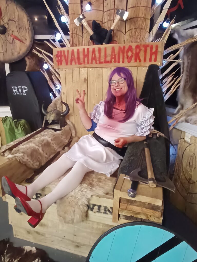 My Wife, whose throwing name is Elsa, said we should try something new one weekend a couple of years ago and booked us a social session at Valhalla North. I have to admit, I was a bit sceptical at first – I present as being quite visibly queer and I thought there would be a lot of stereotypically scary looking men there with big beards and black metal t-shirts!