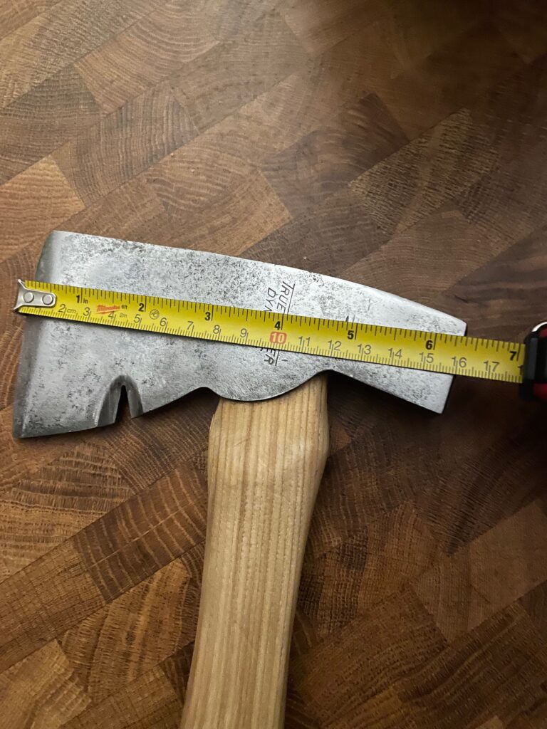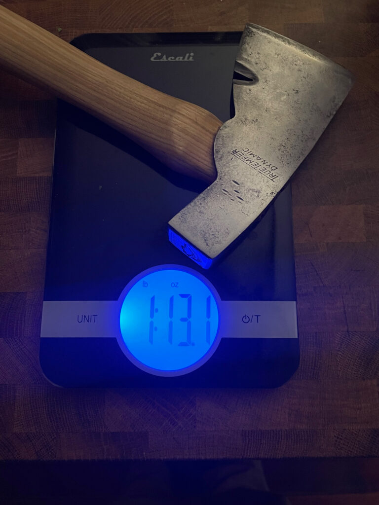 At a weight of 1.5 for the head and something like 1 lb 13 oz for the entire hatchet, it’s light. It’s easy to whip around. It makes me feel slimmer just by holding it.
