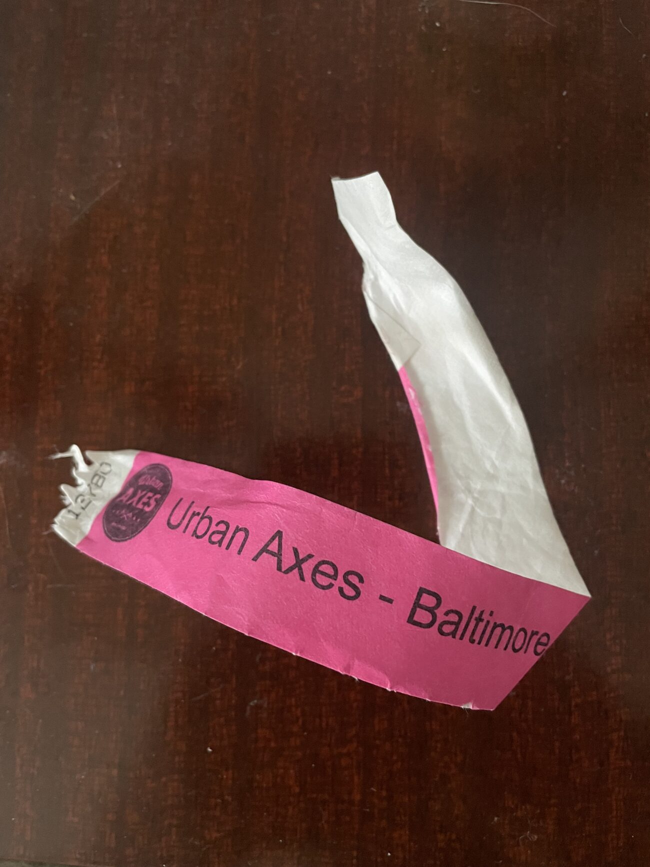 I don’t know why you would care, but it was a very pleasant trip down. Lancaster to Urban Axes Baltimore is about a 1.5 hour trip, and that’s just the right amount of time to talk about nonsense with a good friend before you begin dipping into existential dread conversations.